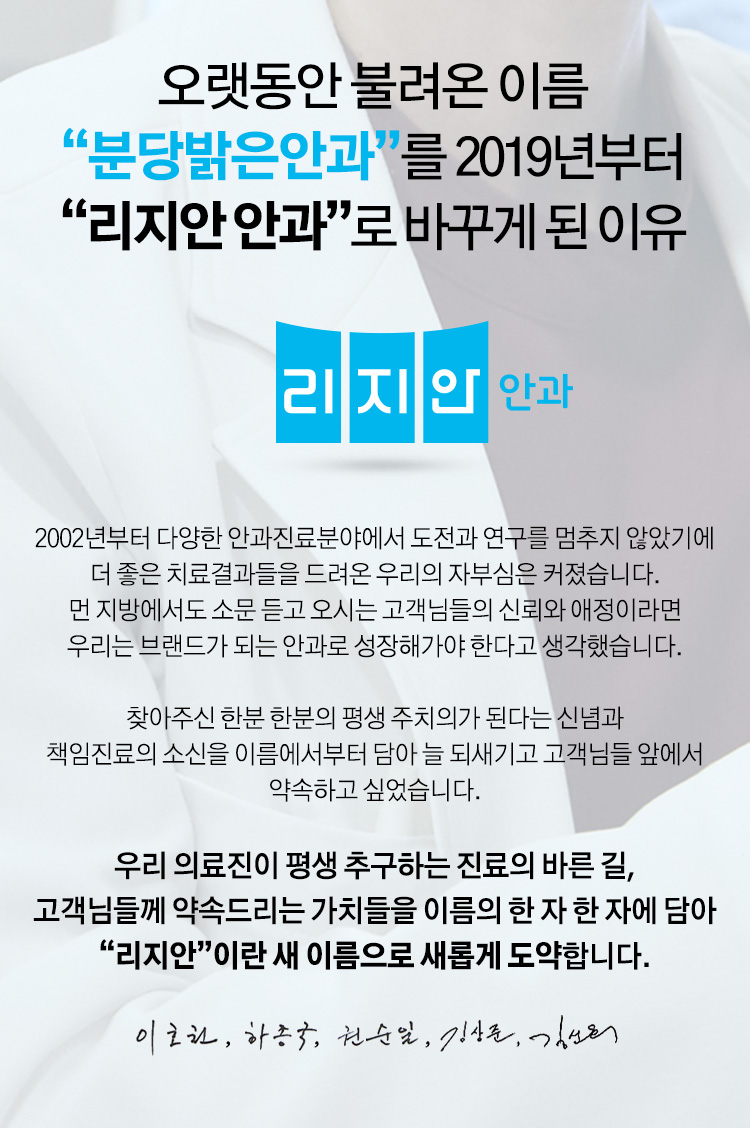 오랫동안 불려온 이름 “분당밝은안과”를 2019년부터 “리지안 안과”로 바꾸게 된 이유