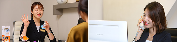 시력교정술의 적합성 및 수술 방법에 대한 상담부터 수술, 후 관리와 진료까지 동일한 의사가 책임지고 시행합니다. 수술 후 상담사가 관리에 대한 유튜브 영상 모바일 전송을 비롯한 밀착 케어를 시행하고 응급콜 시스템과 지방 고객 케어 시스템도 운영하고 있어 더 만족스럽습니다.