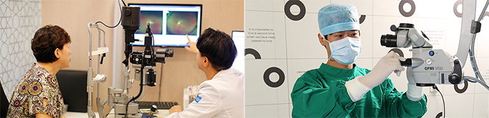 시력교정술 전 눈 정밀검사를 통해 녹내장, 젊은 백내장, 망막질환 등이 발견된 경우에도 대학병원에서부터 각 치료 경험이 풍부한 의료진이 치료하는 협진 시스템을 운영해 시력교정술의 안전성을 높였습니다.