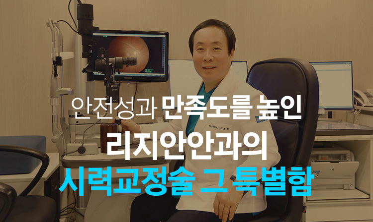 시력교정술을 받아도 노화가 진행되면서 노안이 발생하게 됩니다. 수술 후 세월이 어느 정도 흘러 다시 눈이 잘 안 보이게 된다면 리지안안과에서 정밀검사를 받고 진단 하에 노안교정술로 다시 잘 볼 수 있게 해드립니다. 시력교정술과 노안교정술 경험이 풍부한 의료진이 개인 상태에 적합한 수술과 필요한 진료를 해드릴 수 있습니다.