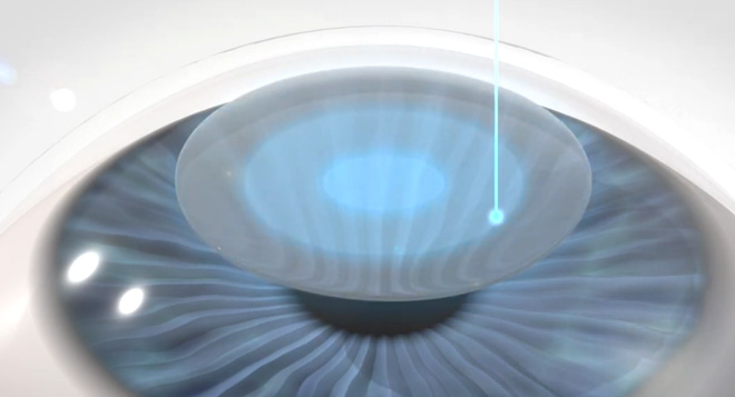 작은 원반 형태의 각막 조직 조각인 렌티큘을 생성하고 각막의 일부를 절개