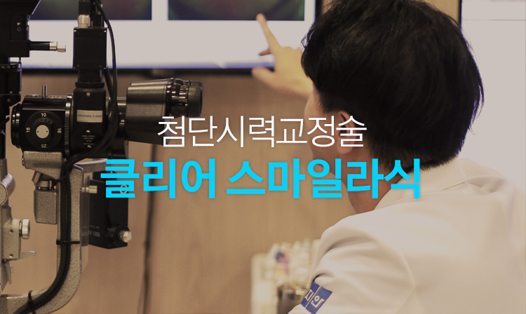 첨단시력교정술 클리어 스마일라식은 기존 스마일 라식과 동일한 방법으로 각막의 견고함을 그대로 유지하며 손상을 최소화하고 안전한 시력개선이 가능한 수술입니다. 빠른 회복을 통해 일상 복귀가 용이하며, 더욱 편안하고 만족스러운 시력 교정 경험을 제공할 것 입니다.