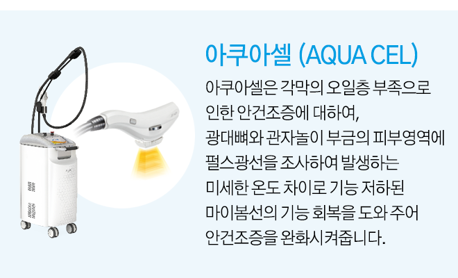 · 눈꺼풀 표면과 주변에 안정적인 레이저를 조사해 마이봄샘 기능 회복 치료 · 미국 FDA 승인 · 시술 즉시 일상 복귀