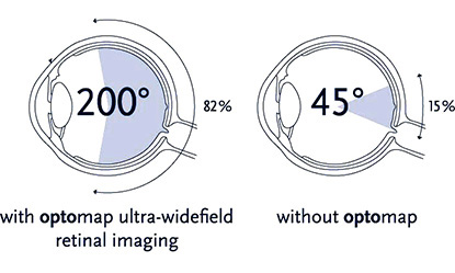 ·동공을 확대하지 않고 망막의 주변부까지 한번에 촬영하여 당뇨병성망막증, 주변부 망막변성 및 망막박리 등 망막질환 여부를 간편하고 정확하게 진단할 수 있습니다.