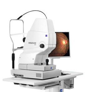 ·망막 혈관 병변의 위치나 정도를 확인하는 안저혈관조영술을 위한 광학 시스템을 가진 칼 자이스사의 비쥬캠