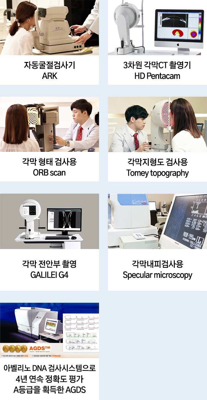 각막의 입체적 지형도를 확인하는 각막 MRI 검사 등을 위한 다양한 첨단장비들도 보유하고 있습니다.